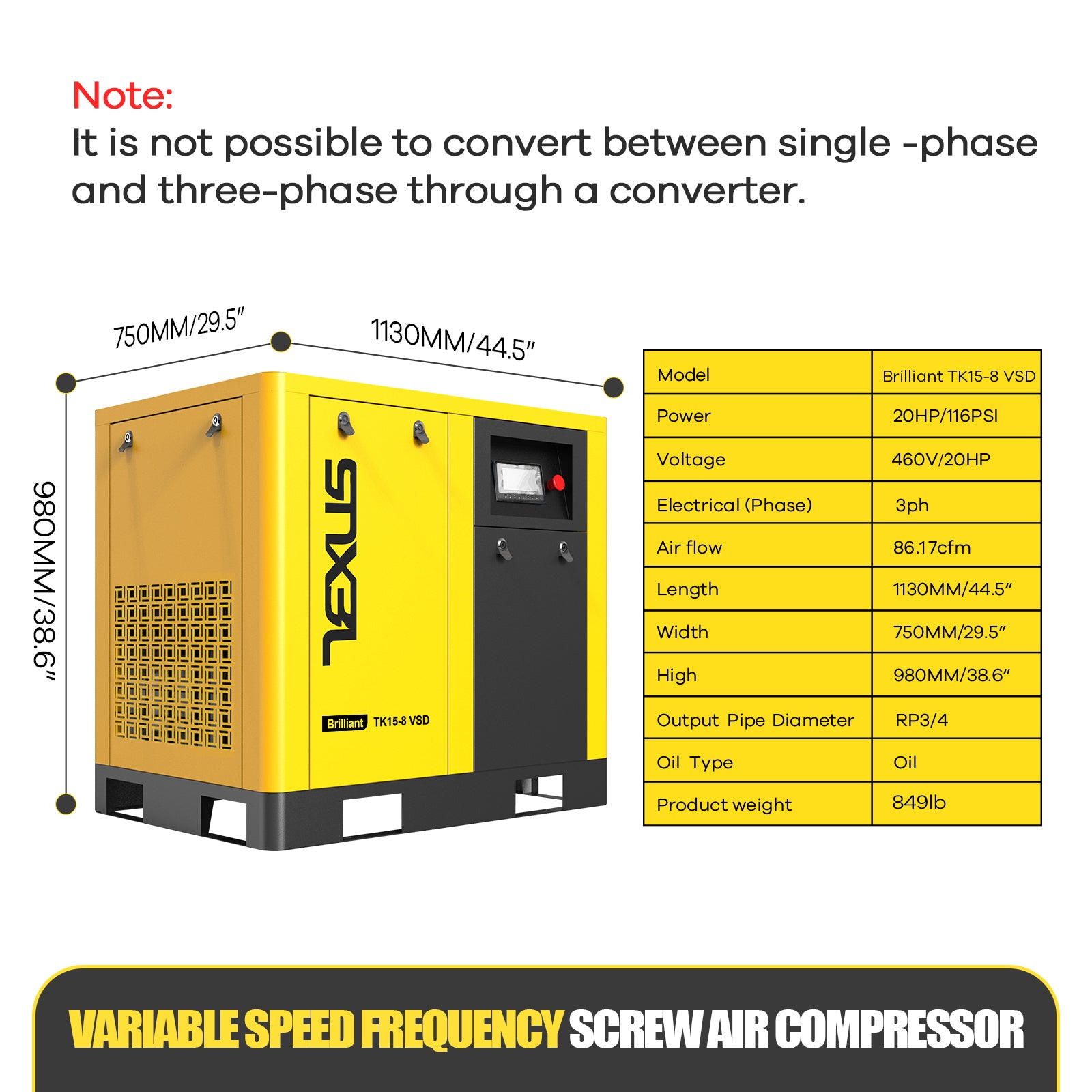 15kW VSD Rotary ScrewAir Compressor-37.43 CFM @116PSl,220V 3-Phase,RP1/2