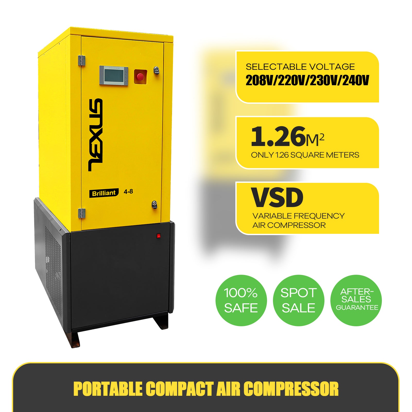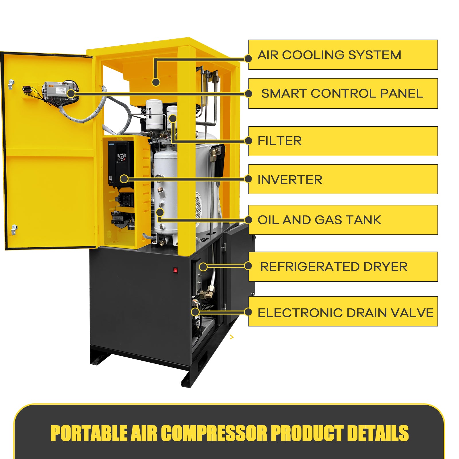 TC Series 5HP 4kW TEXUS Portable Rotary Screw Air Compressor | 19.42CFM @ 116PSI | 220V 3-Phase 60Hz | RP3/4" | VSD